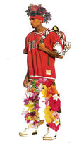 Ma démarche cherche donc, en s’ancrant dans cette nouvelle réalité, à revisiter les attentes et les préjugés que l’on peut avoir par rapport à mes deux univers. J’ai envie de redonner de la vie au sportswear masculin, qui se porte dans notre société plus au sein d’une population ciblée, souvent en marge et en difficulté. Cette population est souvent issue de cités, de quartiers sensibles, on ne la regarde pas toujours favorablement. Avec l’utilisation de la fleur, déclinée à la fois en motif mais aussi comme accessoire, je viens perturber et renouveler la coupe basique et assez terne du sportswear classique (sweat à capuche, jogging, baskets). En faisant référence à l’histoire de la fleur par la tapisserie et par le costume de cérémonie, cet ensemble anodin, devenu banal devient alors une création singulière entre passé et présent. L’art descend dans la rue autant que la rue inspire la mode.